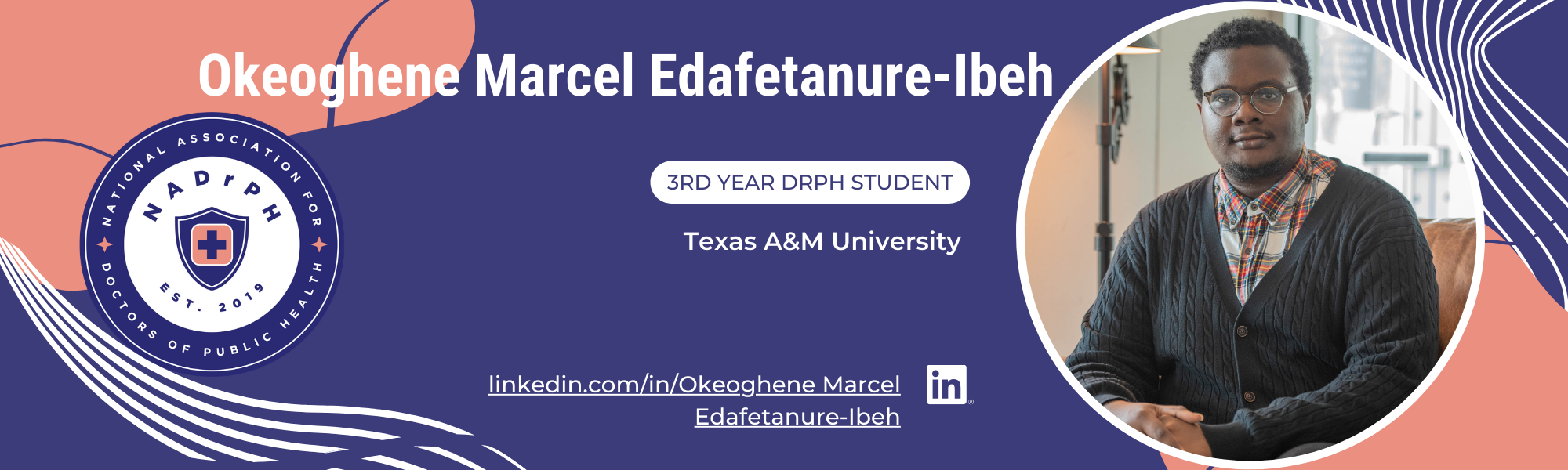 My name is Okeoghene Marcel Edafetanure-Ibeh, I am Originally from Delta State, Nigeria, but I currently reside in Texas and I am a Doctor of Public Health (DrPH) candidate at Texas A&M University, where I also earned my Master of Public Health degree. My academic foundation began with a Bachelor’s in Medical Laboratory Science with a concentration in microbiology from Babcock University, Nigeria. Over time, I have combined this technical expertise with training in environmental and occupational health to focus on tackling pressing public health challenges. Coming from Nigeria and being one of the first in my family to get an advanced degree, my journey has been shaped by resilience, a deep commitment to service, and a passion for advancing global health equity.